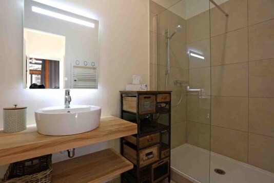La salle de bain, équipée d’une douche XXL, vous offre tout le confort nécessaire après une journée d'activités ou de relaxation. Un petit luxe qui contribue à votre bien-être.