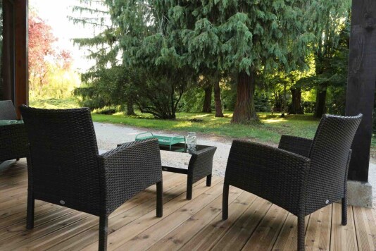 Profitez de moments de détente sur la terrasse ombragée, qui vous offre un accès direct au parc du château. Le cadre est parfait pour vos repas en extérieur, grâce au mobilier de jardin et à la plancha disponibles pour vos grillades en plein air.