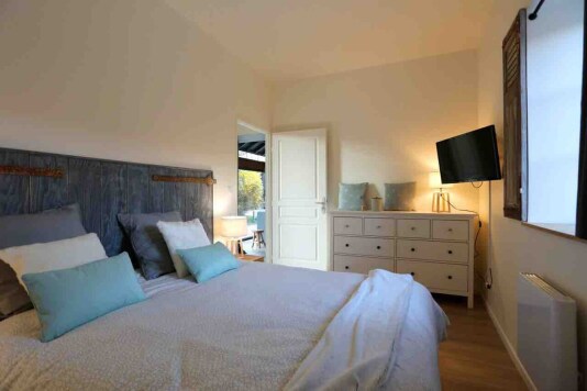 La chambre est un véritable cocon, avec un lit douillet pour deux personnes, garantissant des nuits paisibles dans une atmosphère calme et apaisante.